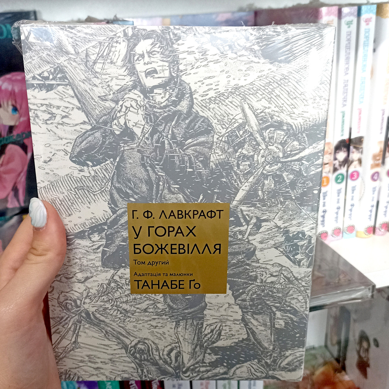У другому томі манги "У горах божевілля", автор Ґоу Танабе продовжує майстерно адаптувати класичне оповідання Говарда Лавкрафта. Це завершення історії про наукову експедицію в Антарктиду, яка розкриває приховані жахи, що загрожують людству. Глибокі підземні тунелі, стародавні руїни та невідомі форми життя стають свідками поступового занурення дослідників у божевілля. Атмосфера страху та напруги досягає свого апогею, коли істини, поховані протягом століть, починають виринати на поверхню.